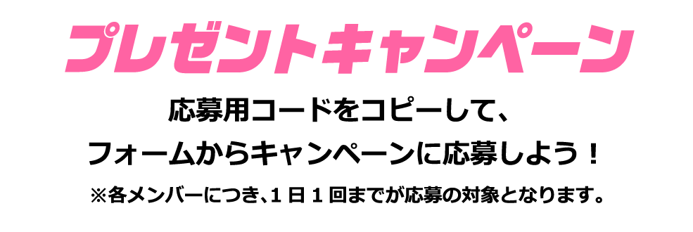 ※1日につき「応募用コード」は1種類のみ有効です。1日に複数回応募された場合も1回迄が応募の対象となります。