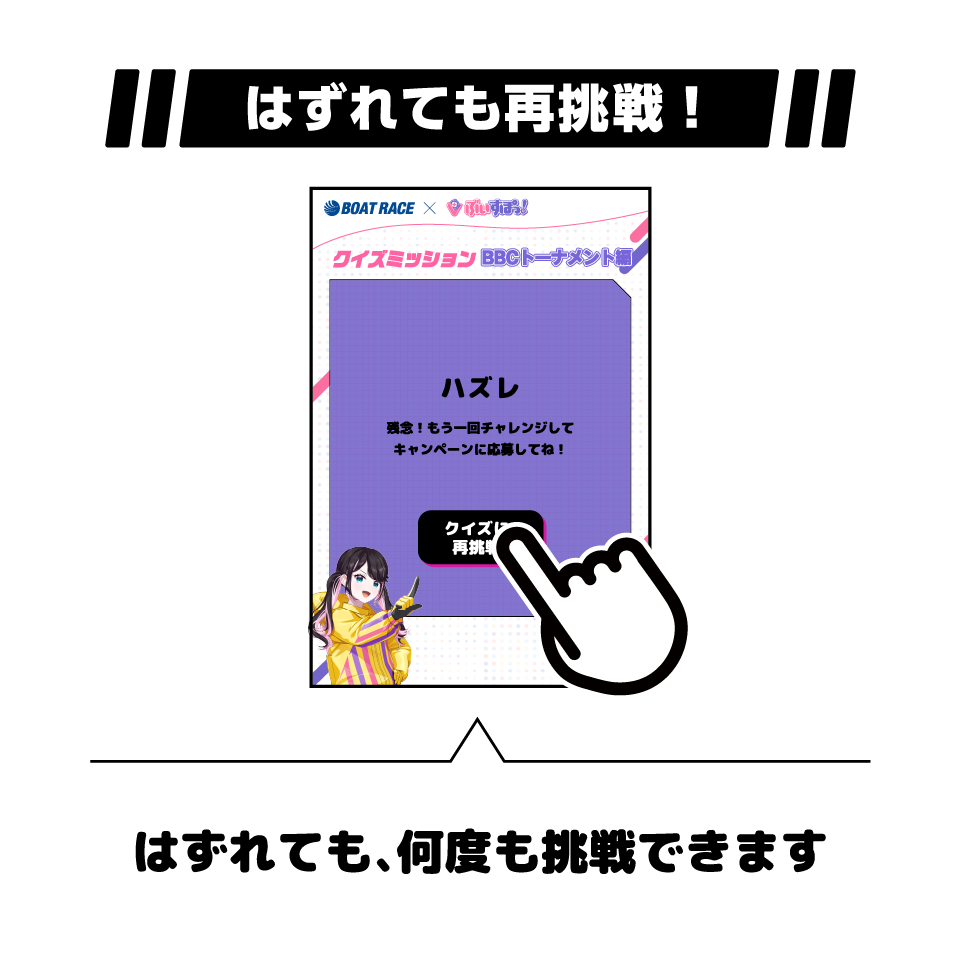 「ぶいボートクイズミッション BBCトーナメント編」につきまして、下記のご利用規約をよくお読みの上,同意される場合のみ応募してください。なお,本キャンペーンに応募された方は,本規約に同意したものとみなします。